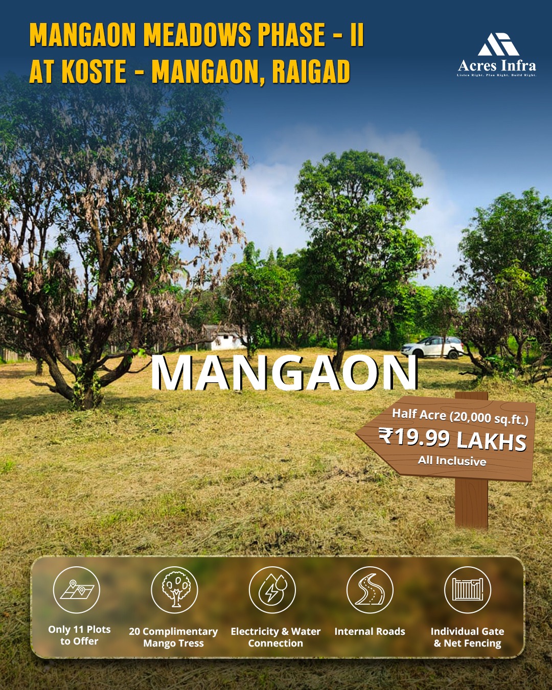 Whether you are looking for a quiet escape from the city's rush or planning a smart long-term investment in Raigad’s rapidly growing belt, Mangaon Meadows promises unmatched value, scenic beauty, and endless possibilities.